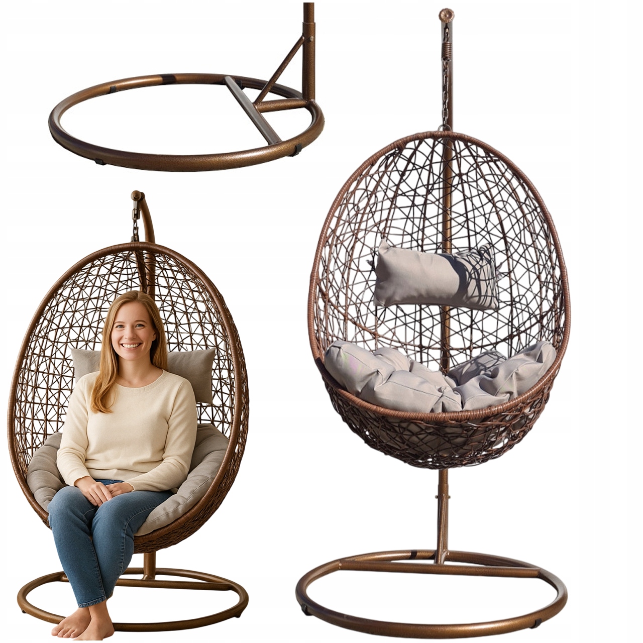 - Dzięki kubełkowemu kształtowi zapewnia maksymalny komfort i wygodę. Podwieszany fotel działa jak huśtawka – delikatnie się buja, co wprowadza w błogi stan odprężenia.